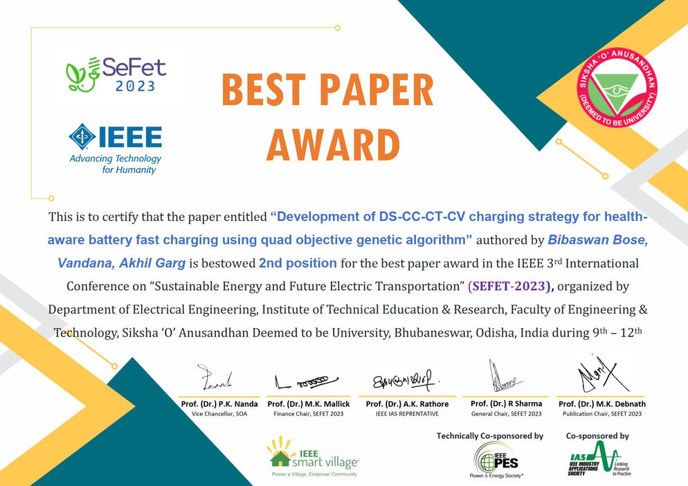 As a Ph.D. Research Scholar at the esteemed Indian Institute of Technology Delhi, my research was centered around the creation of cutting-edge, health-aware battery fast charging solutions for electric vehicles. My work includes the development of advanced digital twin technologies for batteries, as well as the formulation of highly accurate lithium-ion battery electrochemical models. Additionally, I had been actively engaged in the study of capacity fading and degradation phenomena in batteries, enabling me to contribute significantly to the field of energy storage research.